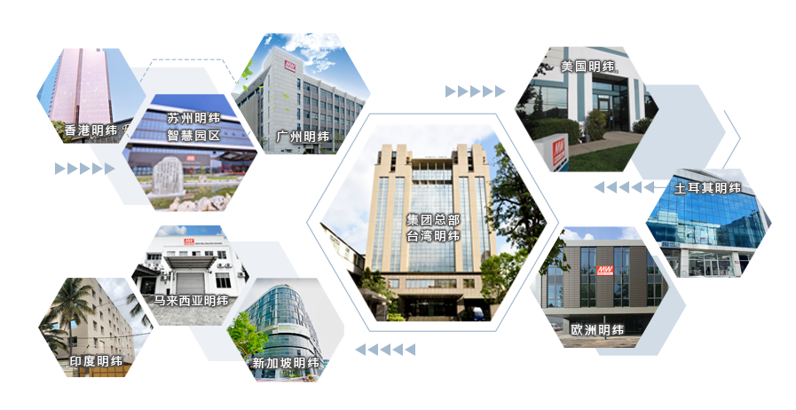 自創立以來,明緯即以「心懷善意」的精神,及「信賴伙伴」的信念持續與客戶、供應商、協力廠及員工保持長期的合作關系,我們藉由與全球260家以上授權經銷商建立的堅強伙伴關系,穩定地成長與茁壯,2024年已成為合并營收達10.22億美金 以上的專業電源品牌制造商,全球總部位于臺灣新北產業園區,在廣州、深圳、蘇州、美國(加州/密蘇里州/紐澤西州)、歐洲荷蘭、印度、新加坡、香港、馬來西亞以及土耳其皆設有分公司及辦事處,全球員工人數達2500人。目前擁有5座生產基地,分別位于臺灣地區新北市、廣州花都區、蘇州市相城區、印度邦加羅爾以及美國堪薩斯城。