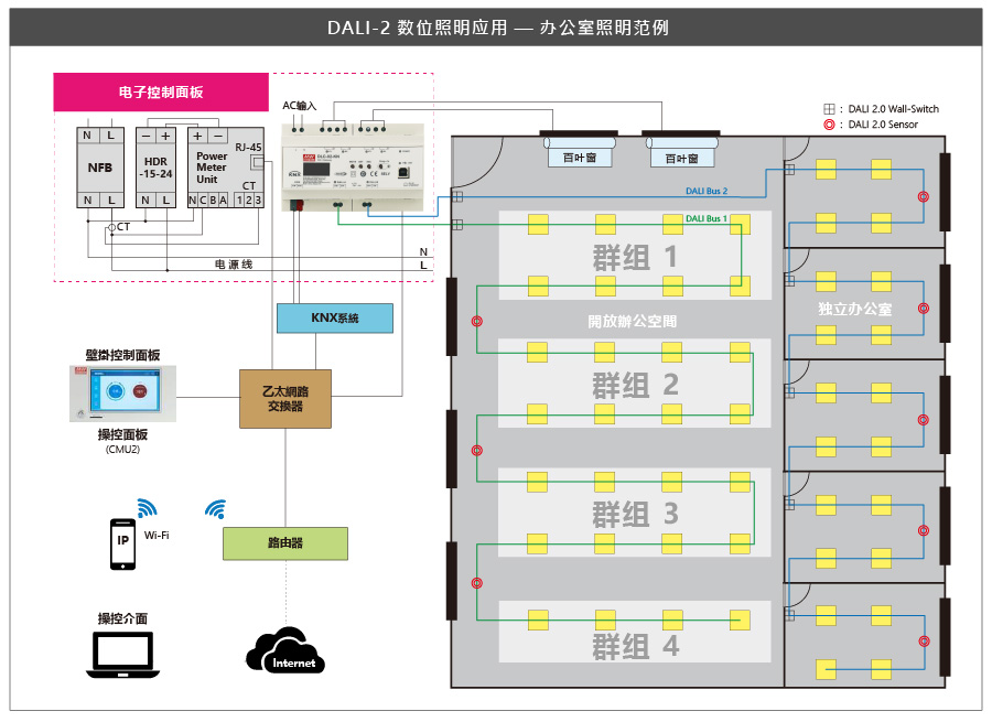 - 2組獨立DALI總線,可接Control Gear及Control Device搭配使用
