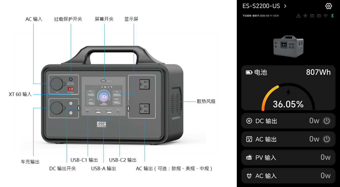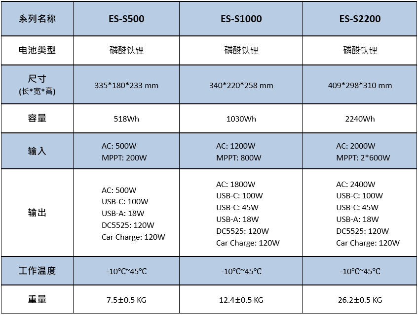 ES-S 系列:500W~2400W 便攜式儲能電源
