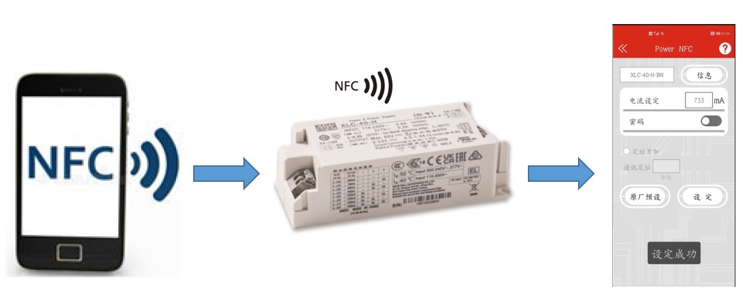 明緯近期推出新一代XLN/XLC-NFC系列產(chǎn)品,用戶可使用具有NFC功能的智能裝置,在產(chǎn)品沒有AC輸入的情況下,透過明緯APP近距離感應(yīng)快速設(shè)定輸出電流,以匹配不同燈具應(yīng)用。
