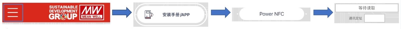 1. 打開明緯 APP → 左上角選單 → 安裝手冊/APP → Power NFC